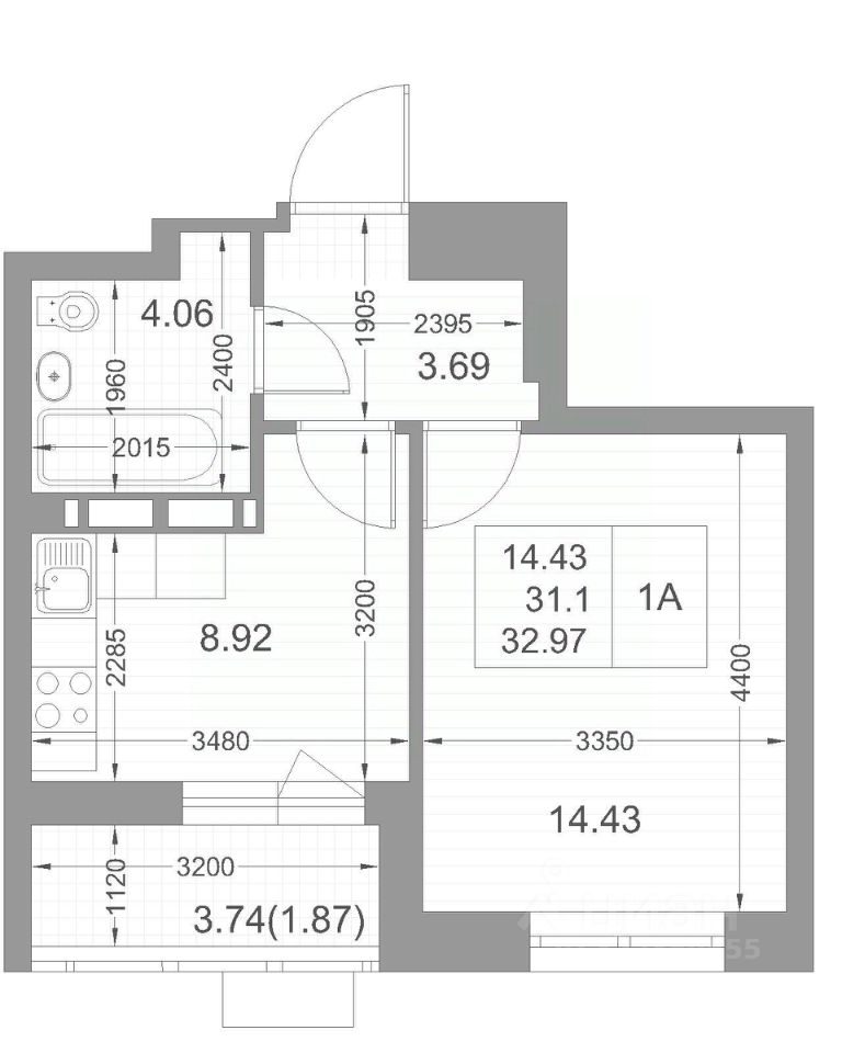 Продается 1-комнатная квартира 54 площадью 32,97 кв.м на 15 этаже. проекта "Мой ритм" от "Ак Барс Дом". Купить квартиру можно в ипотеку со ставкой от 3,2%.