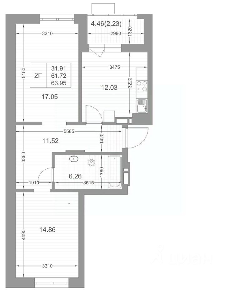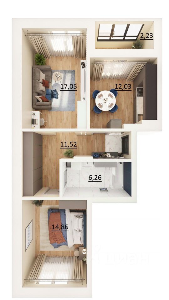Продается 2-комнатная квартира 36 площадью 63,95 кв.м на 3 этаже проекта "Мой ритм" от "Ак Барс Дом". Купить квартиру можно в ипотеку со ставкой от 3,2% или воспользоваться услугой trade-in.