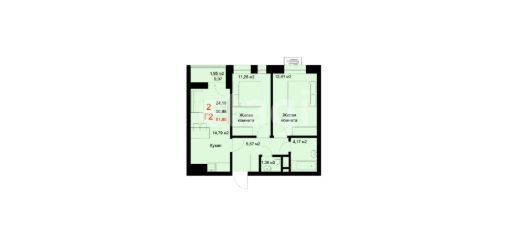 Двух комнатная квартира, с кухней-гостиной 15м2 и 2мя спальнями. Идеально подходит для семей. Дом обладает повышенным уровнем комфорта, благодаря толстым кирпичным стенам, отличной шумоизоляции, большим лестничным площадкам, колясочным комнатам, пассажирским-грузовым лифтам.