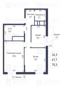 Зонированная кухня с гостиной.Две уютные спальни с прекрасным видом.Современная ванная комната с большой душевой.Вместительная Гардеробная комната.