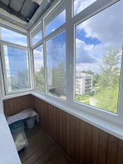 Во всей квартире установлены пластиковые стеклопакеты. Балкон обшит деревом