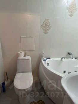 Санузел совмещённый в кафеле, установлена комфортная ванная.
