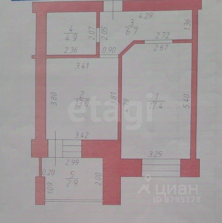 - 1-комнатная квартира на 5 этаже 9-этажного кирпичного дома