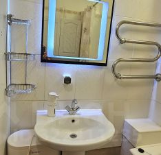 Удобная планировка особенно радует большая кухня 12,6 м , светлая уютная комната правильной прямоугольной формы - 17,2 м, прихожая с гардеробной - 9 м, совмещенный санузел в плитке 3,6 м , просторная лоджия.