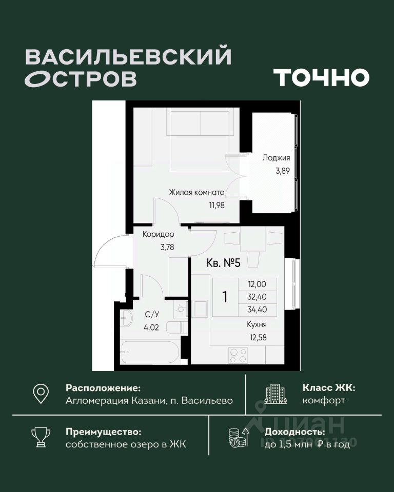 ЖК "Васильевский остров" — масштабный проект ТОЧНО в Казанской агломерации. Просторная территория 88 Га спроектирована для комфортной жизни: озеро с набережной и пляжем, каток, зелёные маршруты. В проекте комплекса — школа на 1 224 места, 2 детских сада на 680 мест, детская и взрослая поликлиники, фитнес-центр с бассейном, термальный комплекс, фермерский рынок, магазины, кафе и рестораны.