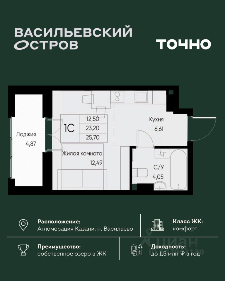 ЖК "Васильевский остров" — масштабный проект ТОЧНО в Казанской агломерации. Просторная территория 88 Га спроектирована для комфортной жизни: озеро с набережной и пляжем, каток, зелёные маршруты. В проекте комплекса — школа на 1 224 места, 2 детских сада на 680 мест, детская и взрослая поликлиники, фитнес-центр с бассейном, термальный комплекс, фермерский рынок, магазины, кафе и рестораны.