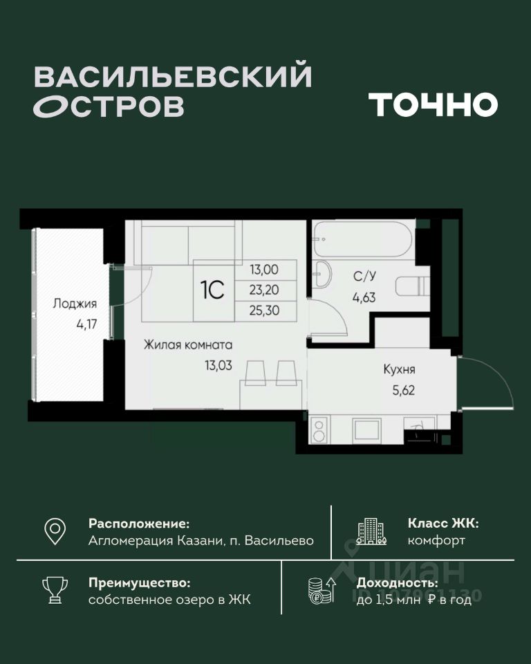 ЖК "Васильевский остров" — масштабный проект ТОЧНО в Казанской агломерации. Просторная территория 88 Га спроектирована для комфортной жизни: озеро с набережной и пляжем, каток, зелёные маршруты. В проекте комплекса — школа на 1 224 места, 2 детских сада на 680 мест, детская и взрослая поликлиники, фитнес-центр с бассейном, термальный комплекс, фермерский рынок, магазины, кафе и рестораны.