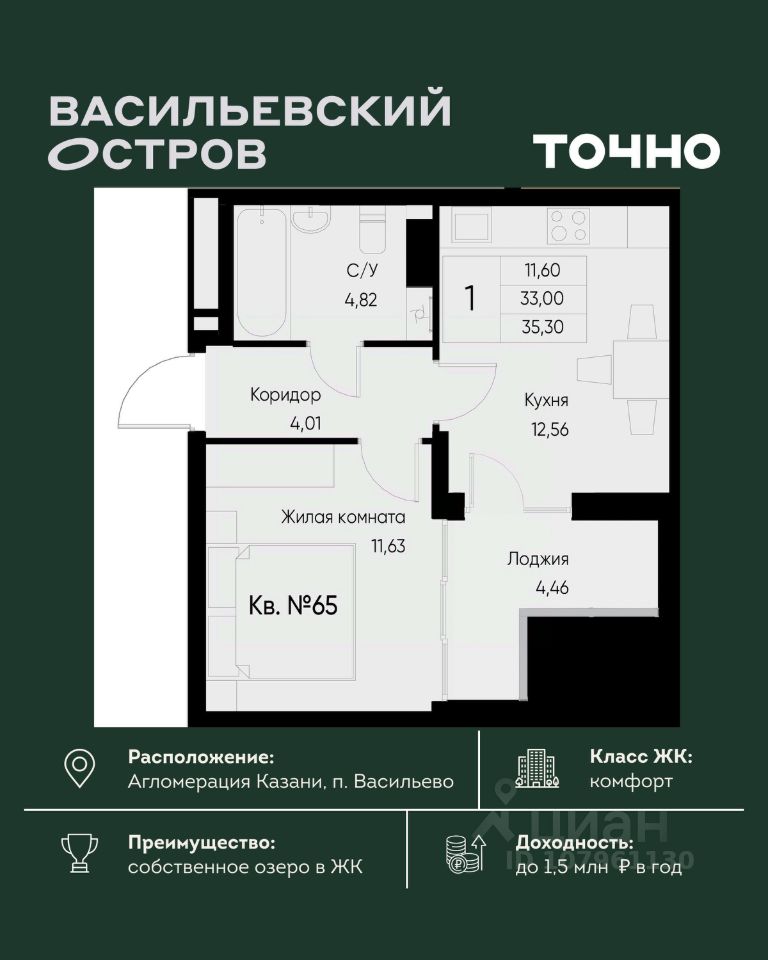 ЖК "Васильевский остров" — масштабный проект ТОЧНО в Казанской агломерации. Просторная территория 88 Га спроектирована для комфортной жизни: озеро с набережной и пляжем, каток, зелёные маршруты. В проекте комплекса — школа на 1 224 места, 2 детских сада на 680 мест, детская и взрослая поликлиники, фитнес-центр с бассейном, термальный комплекс, фермерский рынок, магазины, кафе и рестораны.