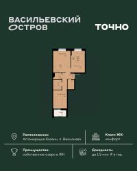 ЖК "Васильевский остров" — масштабный проект ТОЧНО в Казанской агломерации. Просторная территория 88 Га спроектирована для комфортной жизни: озеро с набережной и пляжем, каток, зелёные маршруты. В проекте комплекса — школа на 1 224 места, 2 детских сада на 680 мест, детская и взрослая поликлиники, фитнес-центр с бассейном, термальный комплекс, фермерский рынок, магазины, кафе и рестораны.