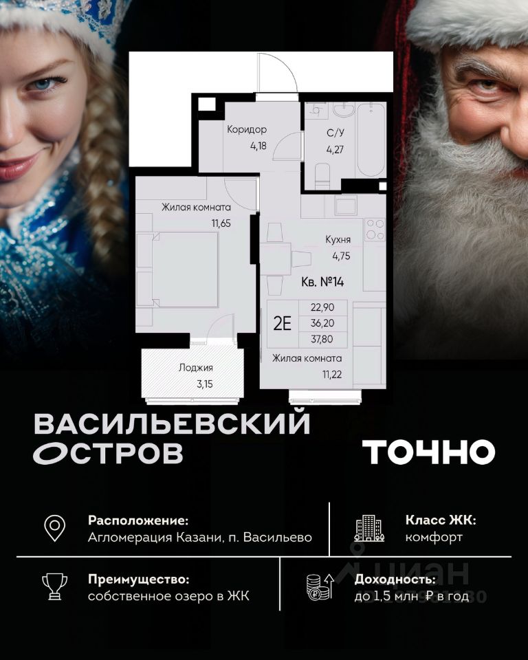 ЖК "Васильевский остров" — масштабный проект ТОЧНО в Казанской агломерации. Просторная территория 88 Га спроектирована для комфортной жизни: озеро с набережной и пляжем, каток, зелёные маршруты. В проекте комплекса — школа на 1 224 места, 2 детских сада на 680 мест, детская и взрослая поликлиники, фитнес-центр с бассейном, термальный комплекс, фермерский рынок, магазины, кафе и рестораны.