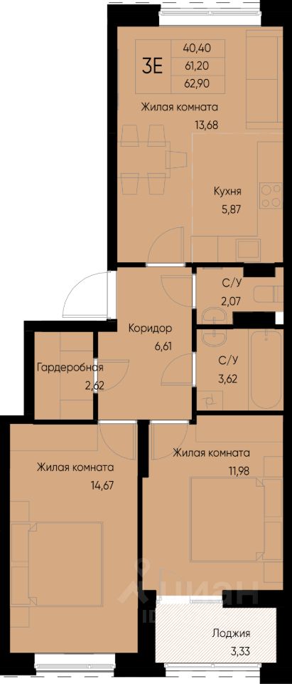Продаётся 3-комнатная квартира в строящемся доме (Дом 1), срок сдачи: III-кв. 2027, общей площадью 62.9 кв.м., на 4 этаже. ЖК "Васильевский остров" — масштабный проект ТОЧНО в Казанской агломерации. Просторная территория 88 Га спроектирована для комфортной жизни: озеро с набережной и пляжем, каток, зелёные маршруты. В проекте комплекса — школа на 1 224 места, 2 детских сада на 680 мест, детская и взрослая поликлиники, фитнес-центр с бассейном, термальный комплекс, фермерский рынок, магазины, кафе и рестораны.