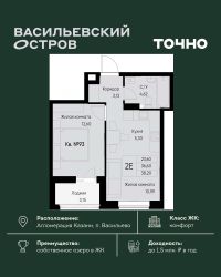 ЖК "Васильевский остров" — масштабный проект ТОЧНО в Казанской агломерации. Просторная территория 88 Га спроектирована для комфортной жизни: озеро с набережной и пляжем, каток, зелёные маршруты. В проекте комплекса — школа на 1 224 места, 2 детских сада на 680 мест, детская и взрослая поликлиники, фитнес-центр с бассейном, термальный комплекс, фермерский рынок, магазины, кафе и рестораны.