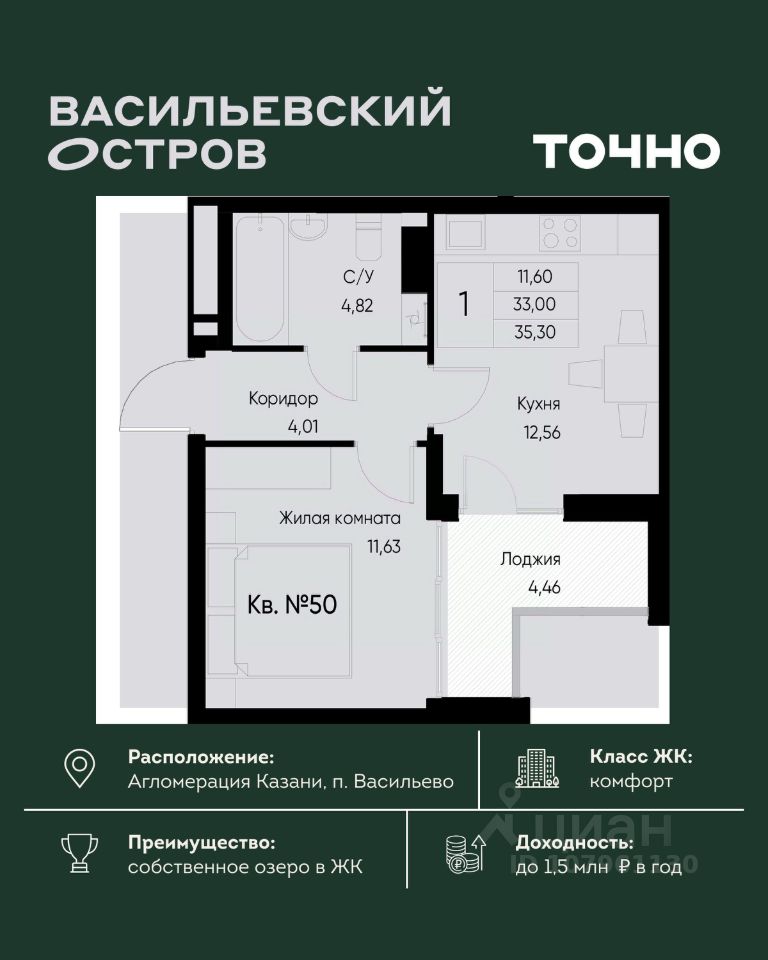 ЖК "Васильевский остров" — масштабный проект ТОЧНО в Казанской агломерации. Просторная территория 88 Га спроектирована для комфортной жизни: озеро с набережной и пляжем, каток, зелёные маршруты. В проекте комплекса — школа на 1 224 места, 2 детских сада на 680 мест, детская и взрослая поликлиники, фитнес-центр с бассейном, термальный комплекс, фермерский рынок, магазины, кафе и рестораны.