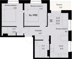 Общая площадь57 м²
