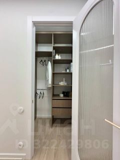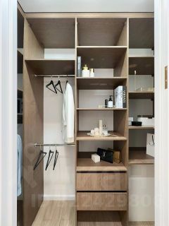 Удобная и вместительная гардеробная комната с выводом для стиральной машинки.