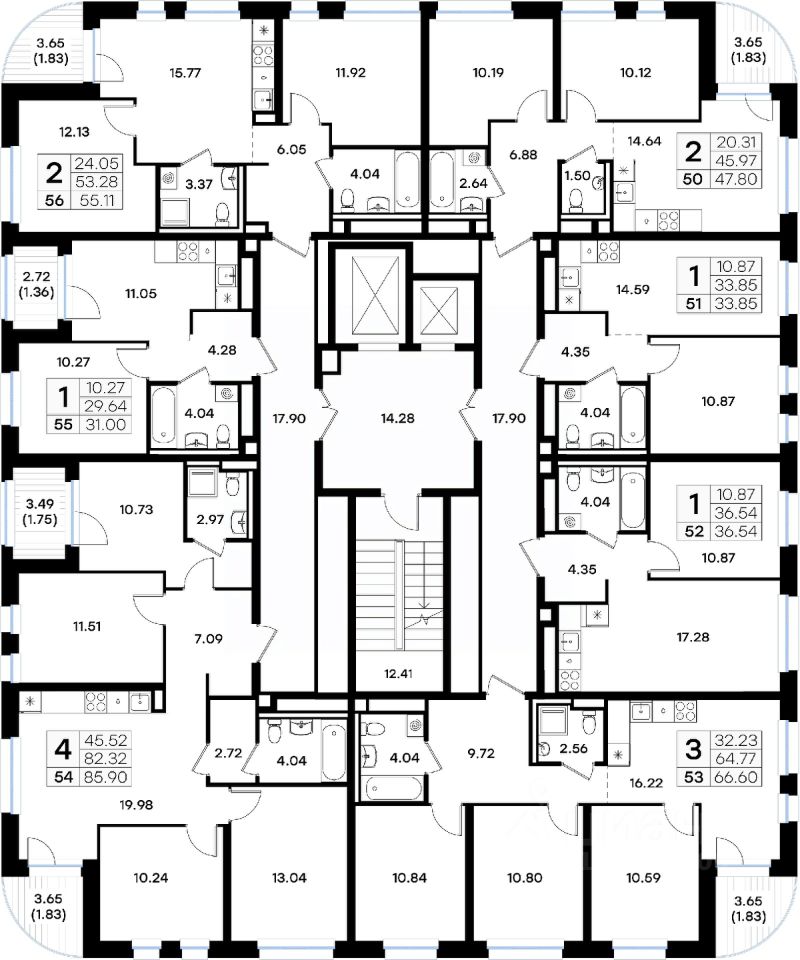 Продается 4-комн. квартира на 9-м этаже в строящемся проекте GloraX Экосити. Общая площадь лота составляет 85,90 кв. м, из которых 45,52 кв. м отведено под жилую и 19,98 кв. м под кухонную зону. Номер квартиры - 54