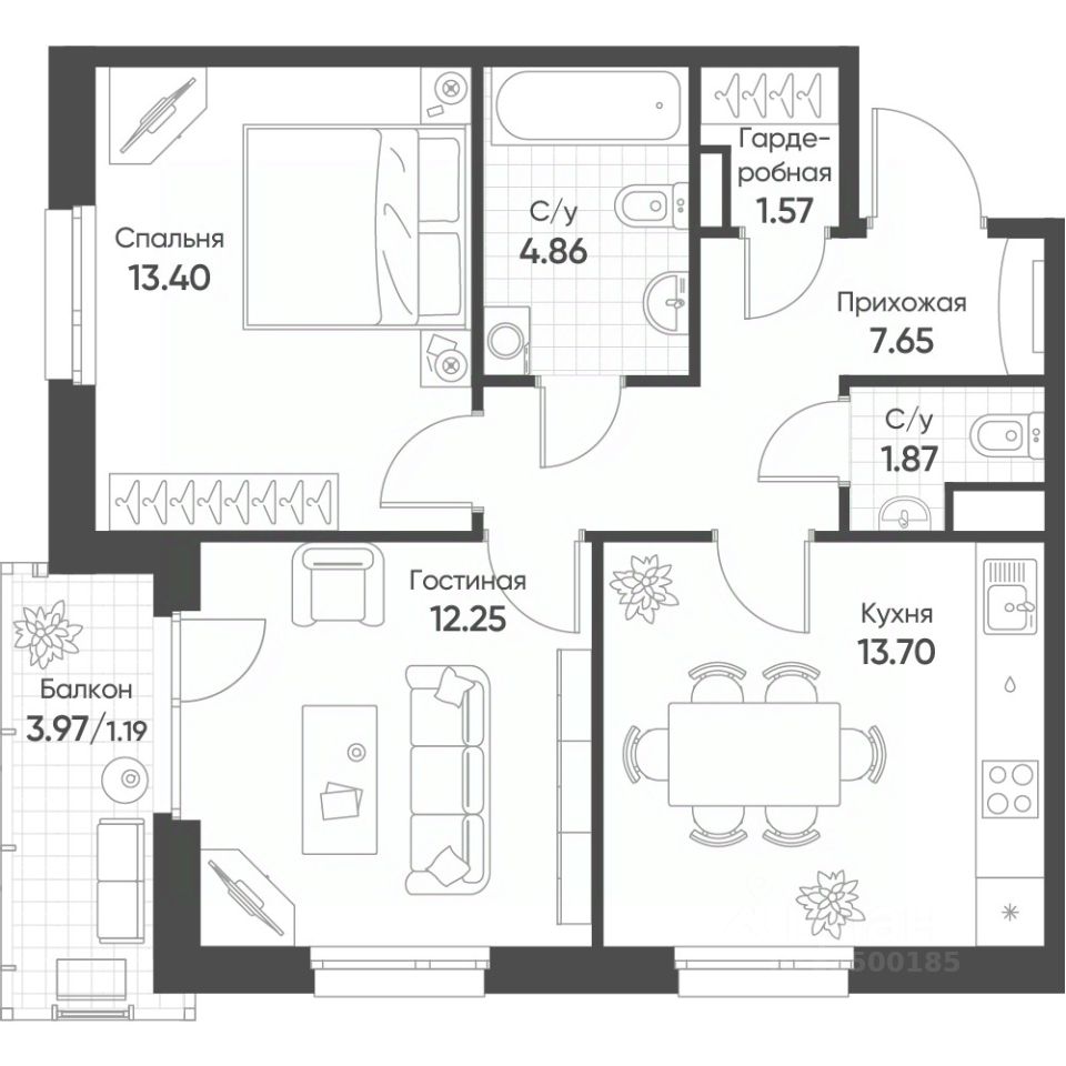 2-комн. квартира, 56,5 м²