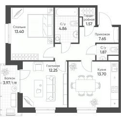3-комн. от 57,2 м²
