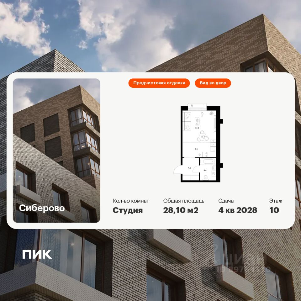 Продаётся квартира-студия площадью 28,1 кв.м на 10 этаже 26 этажного дома (Корпус 3, Секция 6) проекта ПИК Сиберово. Светлый просторный подъезд на уровне земли, функциональная планировка, большие окна, предчистовая отделка.