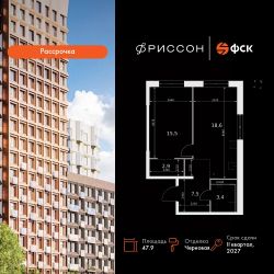 Продаётся 1-к квартира номер 2 общей площадью 47.9 кв.м. на 3-м этаже 20 этажного дома. Отделка Whitebox. Цена с учётом скидки!