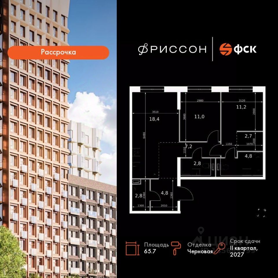 Продаётся 2-к квартира номер 21 общей площадью 65.7 кв.м. на 5-м этаже 20 этажного дома. Отделка Whitebox. Цена с учётом скидки!