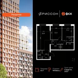 Продаётся 2-к квартира номер 21 общей площадью 65.7 кв.м. на 5-м этаже 20 этажного здания. Отделка Whitebox. Цена с учётом скидки.