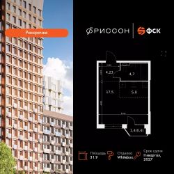 Продаётся квартира-студия номер 82 общей площадью 31.9 кв.м. на 14-м этаже 20 этажного здания. Отделка Whitebox. Цена с учётом скидки.