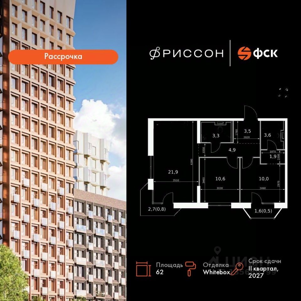 Продаётся 2-к квартира номер 97 общей площадью 62 кв.м. на 16-м этаже 20 этажного здания. Отделка Whitebox. Цена с учётом скидки.