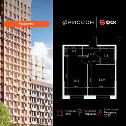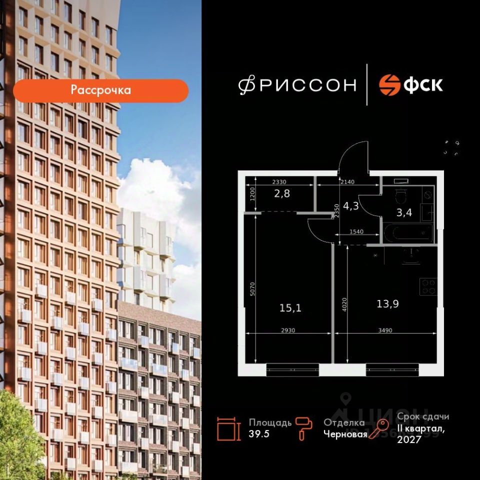 Продаётся 1-к квартира номер 102 общей площадью 39.5 кв.м. на 17-м этаже 20 этажного дома. Отделка Whitebox. Цена с учётом скидки!
