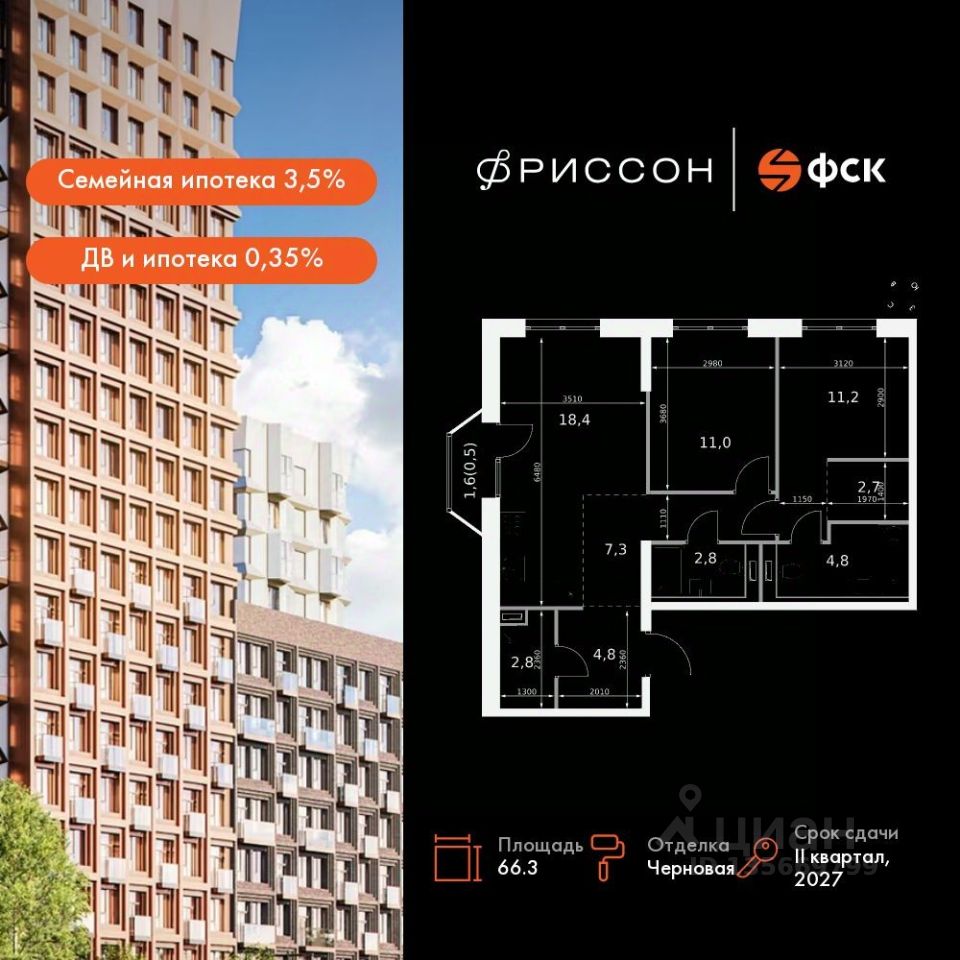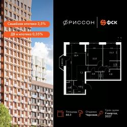 Продаётся 2-к квартира номер 105 общей площадью 66.3 кв.м. на 17-м этаже 20 этажного дома. Отделка Whitebox. Цена с учётом скидки!