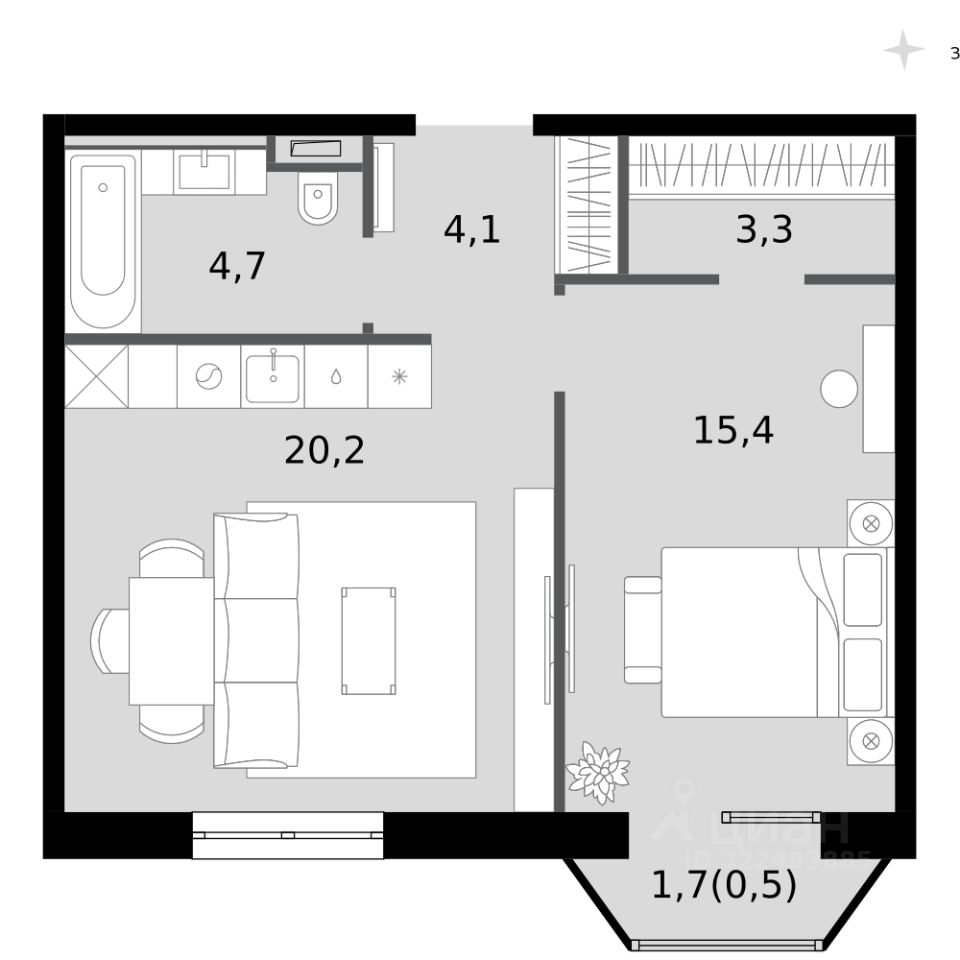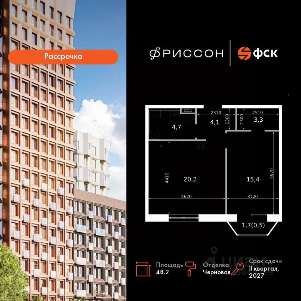 Продаётся 2-к квартира номер 401 общей площадью 48.2 кв.м. на 13-м этаже 14 этажного дома. Отделка Whitebox. Цена с учётом скидки!