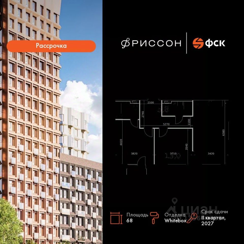 Продаётся 3-к квартира номер 335 общей площадью 68 кв.м. на 4-м этаже 14 этажного здания. Отделка Whitebox. Цена с учётом скидки.