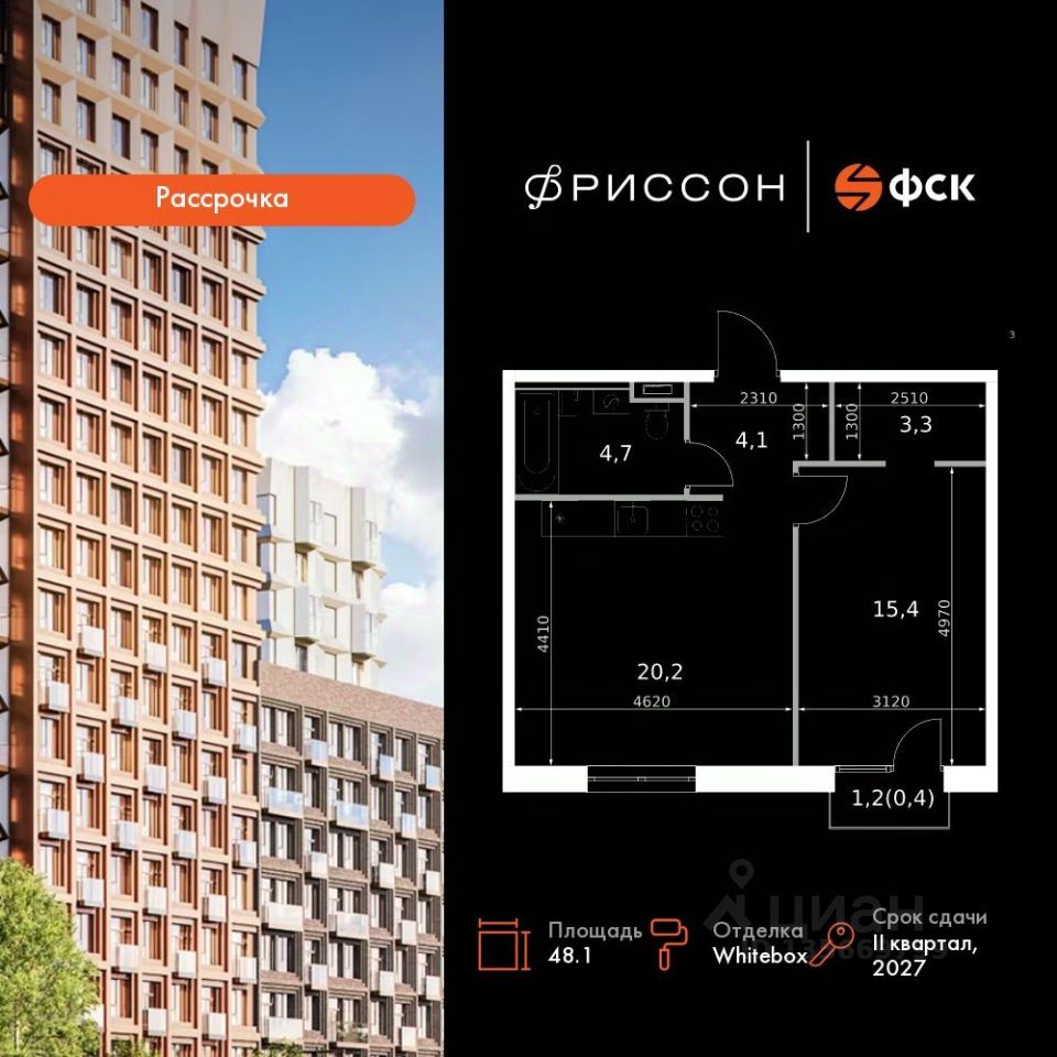 Продаётся 2-к квартира номер 338 общей площадью 48.1 кв.м. на 4-м этаже 14 этажного здания. Отделка Whitebox. Цена с учётом скидки.