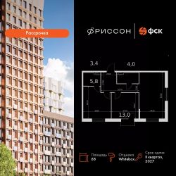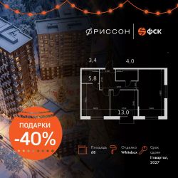 Продаётся 3-к квартира номер 342 общей площадью 68 кв.м. на 5-м этаже 14 этажного здания. Отделка Whitebox. Цена с учётом скидки.