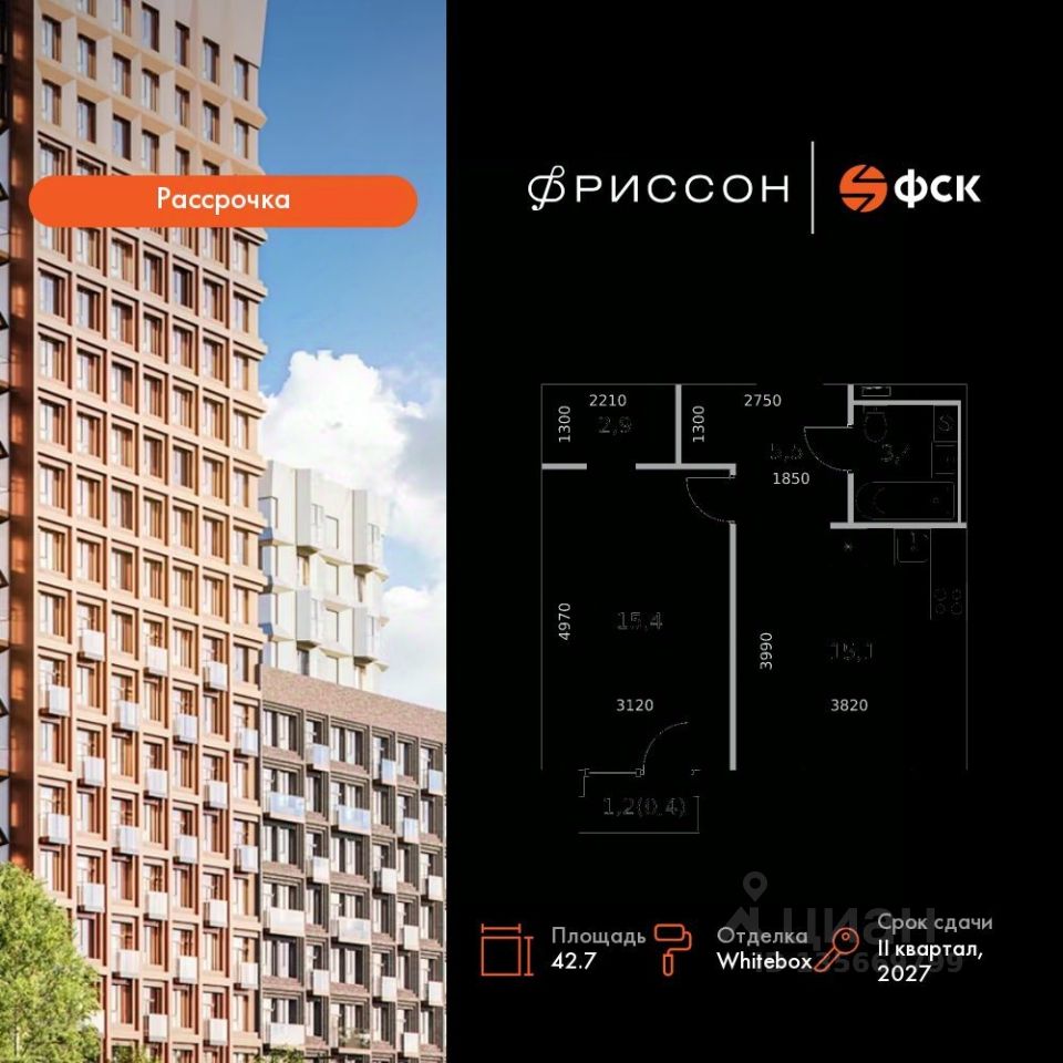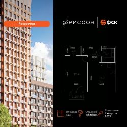 Продаётся 1-к квартира номер 344 общей площадью 42.7 кв.м. на 5-м этаже 14 этажного здания. Отделка Whitebox. Цена с учётом скидки.