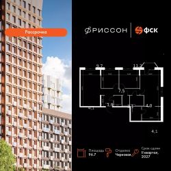 Продаётся 4-к квартира номер 369 общей площадью 96.7 кв.м. на 9-м этаже 14 этажного дома. Отделка Whitebox. Цена с учётом скидки!
