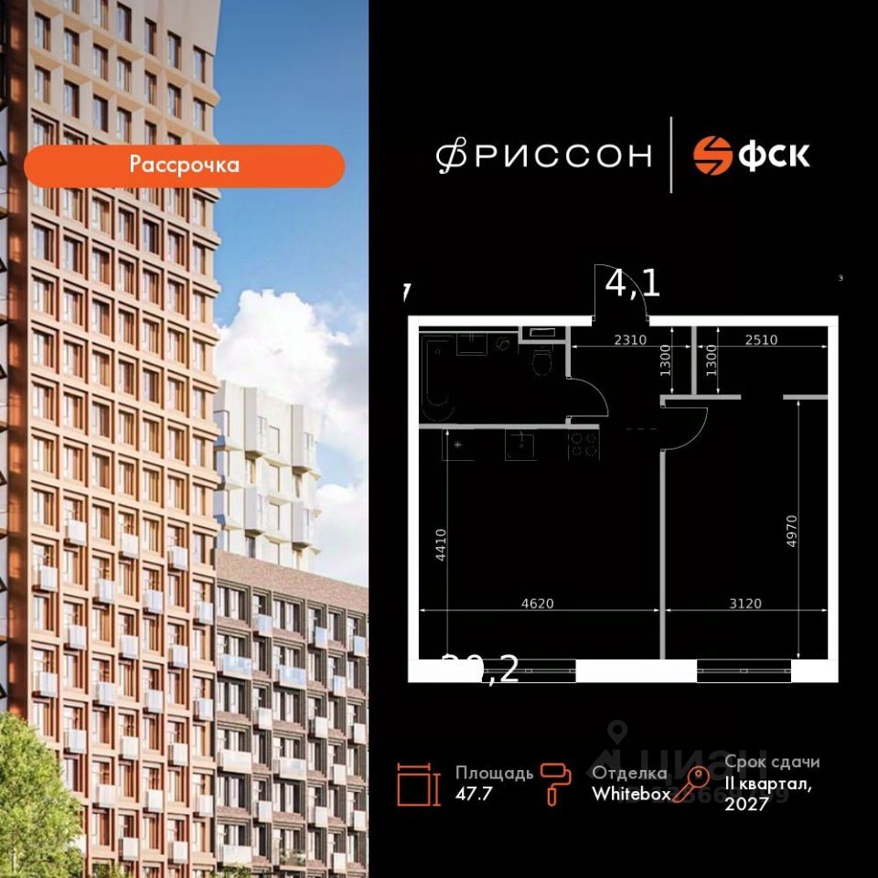 Продаётся 2-к квартира номер 352 общей площадью 47.7 кв.м. на 6-м этаже 14 этажного здания. Отделка Whitebox. Цена с учётом скидки.