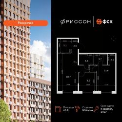 Продаётся 3-к квартира номер 247 общей площадью 66.8 кв.м. на 13-м этаже 19 этажного здания. Отделка Whitebox. Цена с учётом скидки.