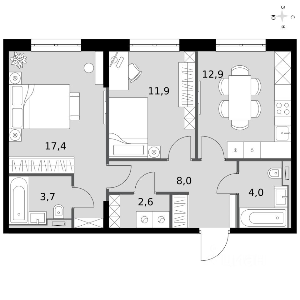 Продаётся 2-к квартира номер 276 общей площадью 60.5 кв.м. на 17-м этаже 19 этажного дома. Отделка Whitebox. Цена с учётом скидки!