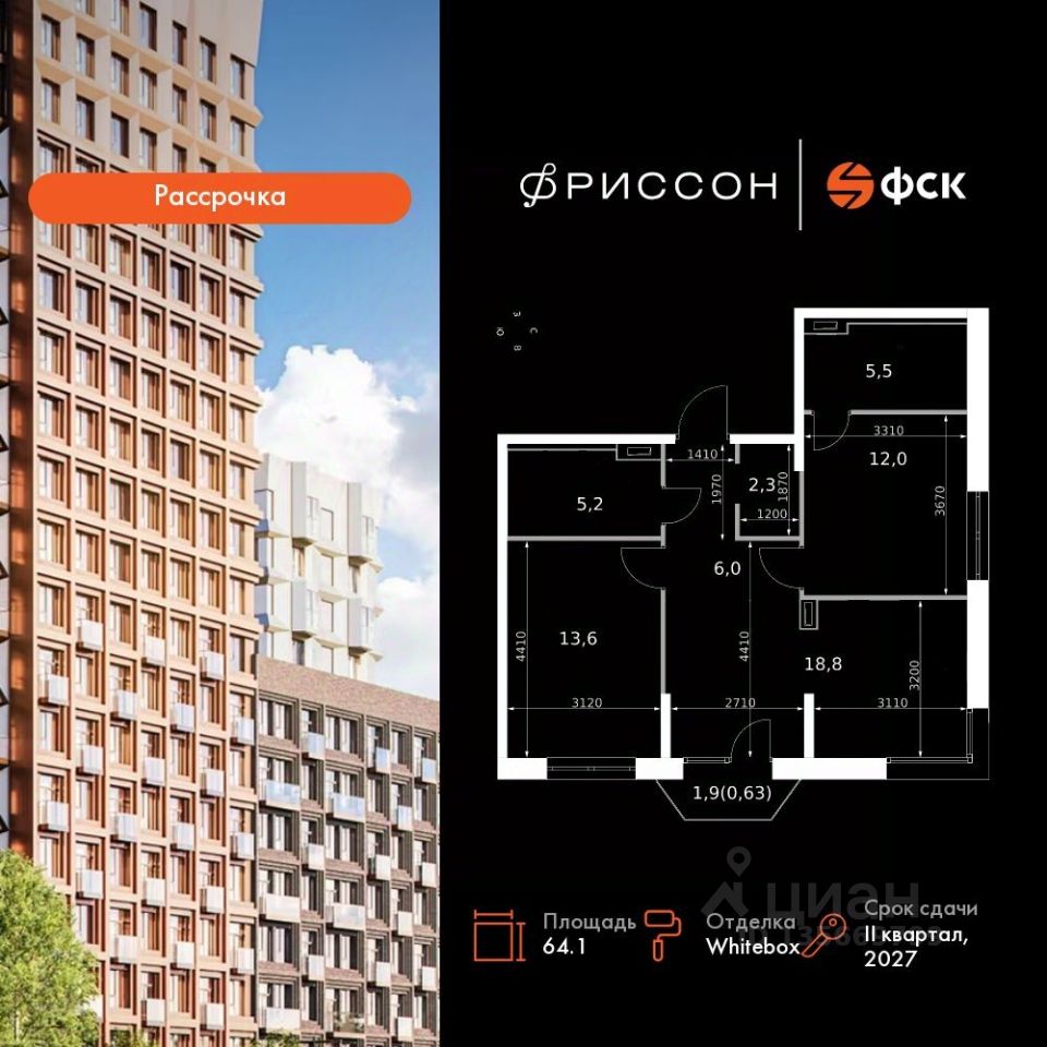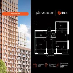 Продаётся 3-к квартира номер 209 общей площадью 64.1 кв.м. на 8-м этаже 19 этажного здания. Отделка Whitebox. Цена с учётом скидки.