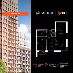Продаётся 3-к квартира номер 216 общей площадью 64.1 кв.м. на 9-м этаже 19 этажного здания. Отделка Whitebox. Цена с учётом скидки.