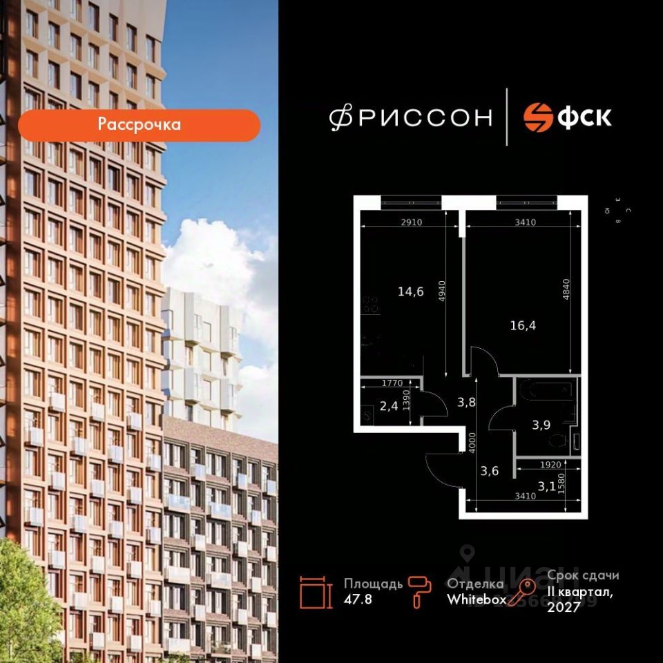 Продаётся 1-к квартира номер 291 общей площадью 47.8 кв.м. на 3-м этаже 8 этажного здания. Отделка Whitebox. Цена с учётом скидки.