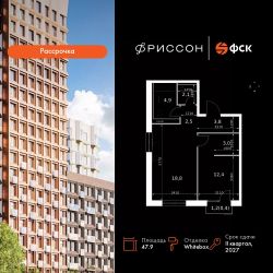 Продаётся 2-к квартира номер 301 общей площадью 47.9 кв.м. на 4-м этаже 8 этажного здания. Отделка Whitebox. Цена с учётом скидки.