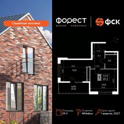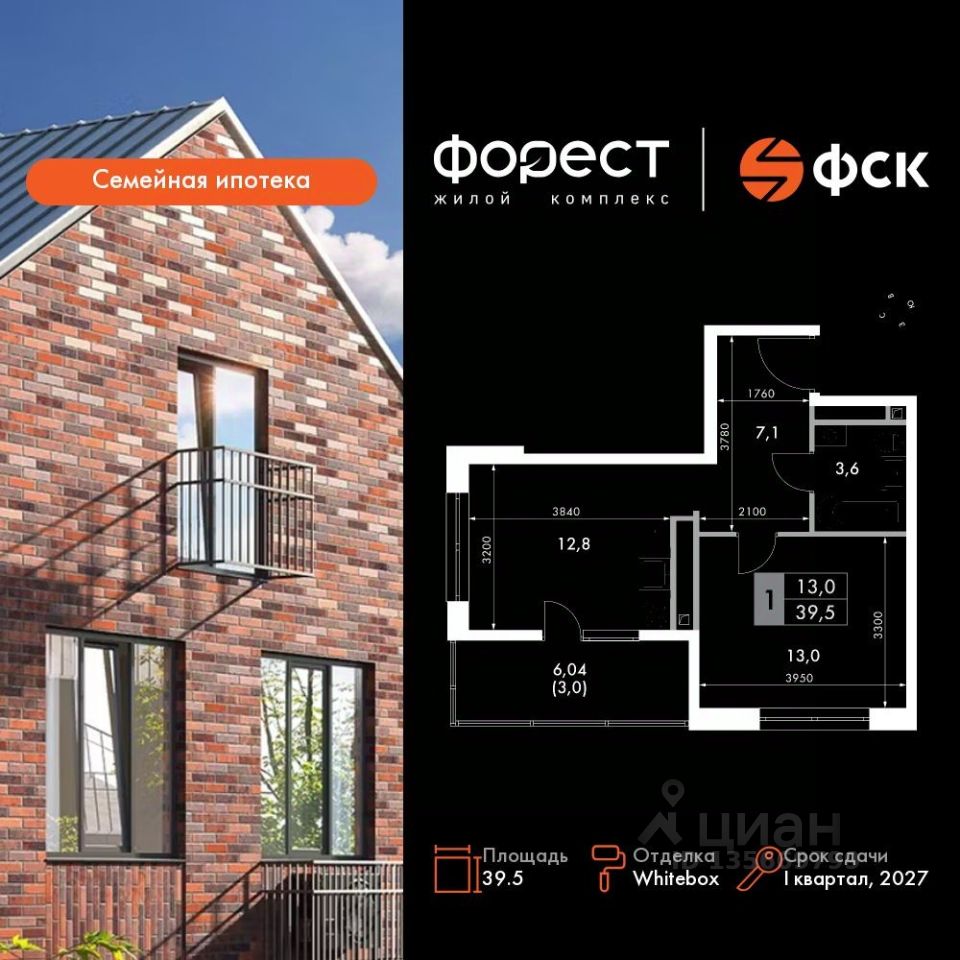 Продаётся 1-к квартира номер 59 общей площадью 39.5 кв.м. на 7-м этаже 7 этажного здания. Отделка Whitebox. Цена с учётом скидки.