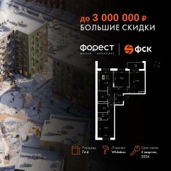 Продаётся 3-к квартира номер 85 общей площадью 74.4 кв.м. на 5-м этаже 6 этажного здания. Отделка Whitebox. Цена с учётом скидки.