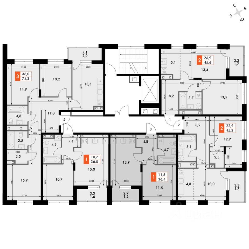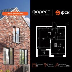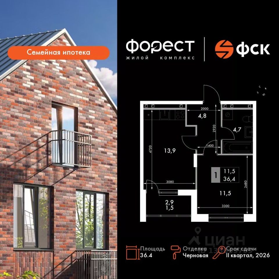 Продаётся 1-к квартира номер 68 общей площадью 36.4 кв.м. на 2-м этаже 6 этажного дома. Отделка Whitebox. Цена с учётом скидки!
