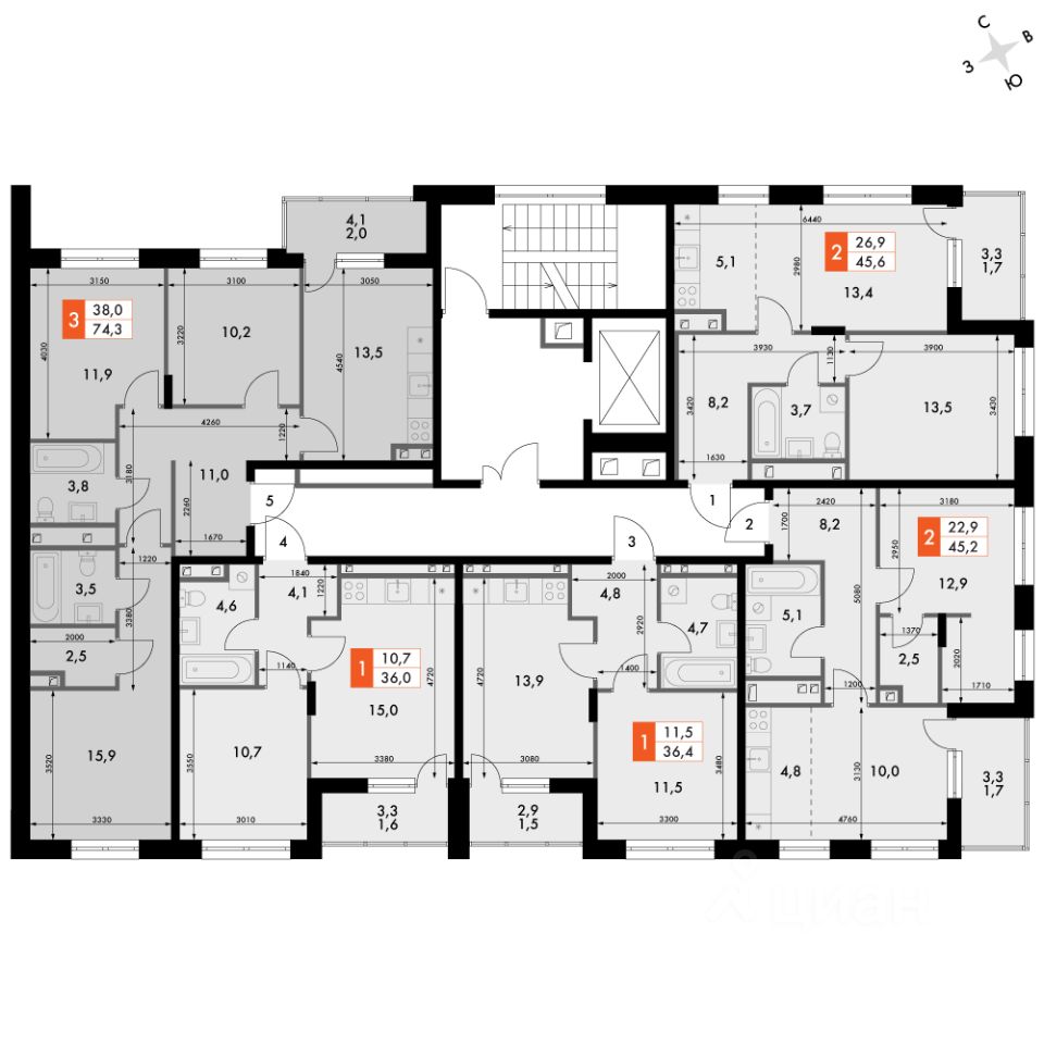Продаётся 3-к квартира номер 70 общей площадью 74.3 кв.м. на 2-м этаже 6 этажного дома. Отделка Whitebox. Цена с учётом скидки!
