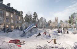 На территории комплекса работает собственный детский сад - современное и безопасное пространство, где дети всегда рядом с родителями. Во дворе установлены игровые комплексы для активных прогулок и развития малышей на свежем воздухе.