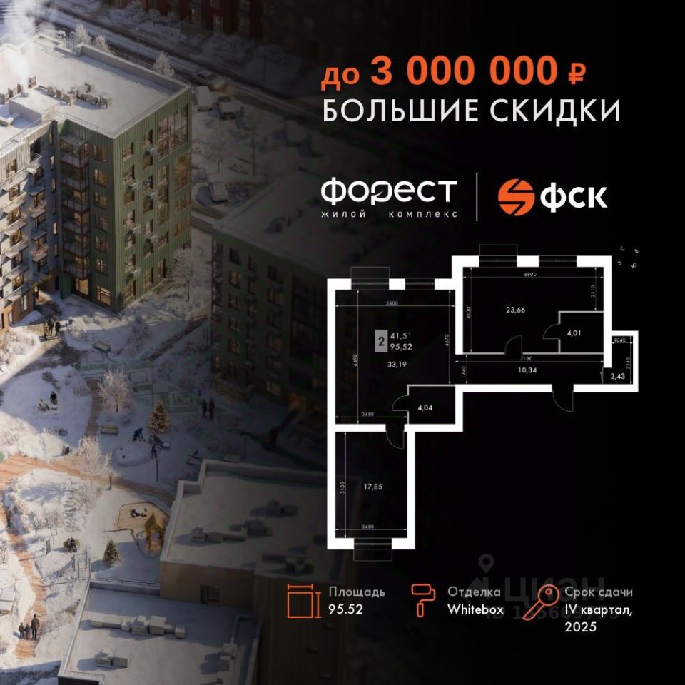 Продаётся 3-к квартира номер 25 общей площадью 95.3 кв.м. на 4-м этаже 4 этажного здания. Отделка Whitebox. Цена с учётом скидки.