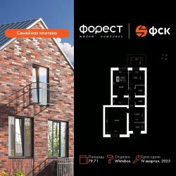 Продаётся 2-к квартира номер 26 общей площадью 79.71 кв.м. на 1-м этаже 4 этажного здания. Отделка Whitebox. Цена с учётом скидки.